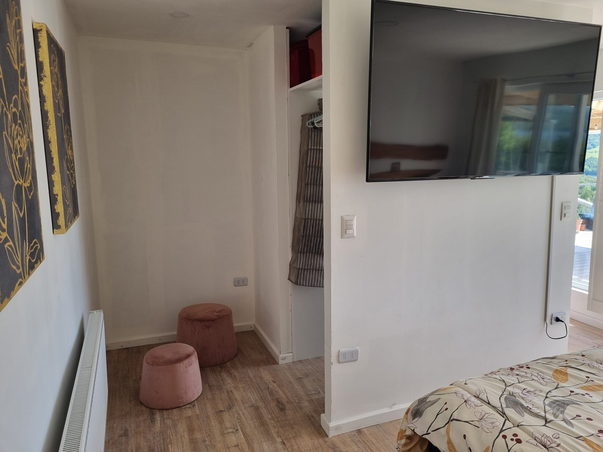 Habitación con las siguientes prestaciones: Cama doble, matrimonial o 2 plazas. Vista al lago. Salida independiente a la terraza. Closet. Calefacción en invierno. Baño privado compartido entre dos habitaciones.